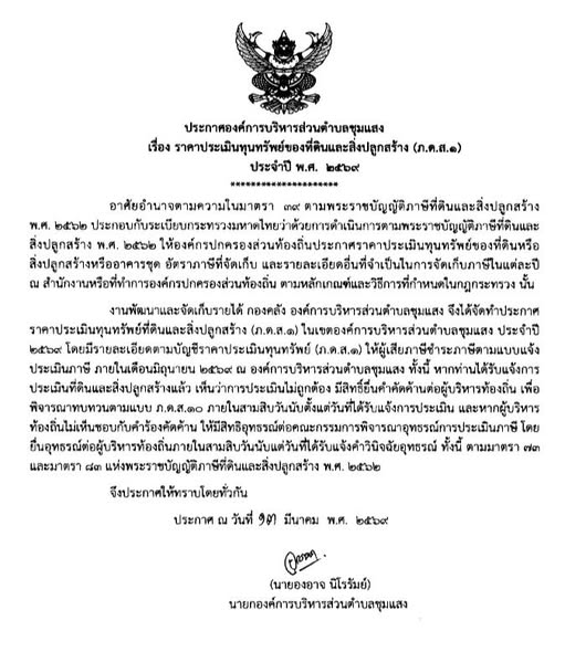 1 ประกาศองค์การบริหารส่วนตำบลชุมแสง เรือง ประเมินราคาทุนทรัพย์และสิ่งปลูกสร้าง (ภ.ด.ส.1) พ.ศ. 2569 [ 13 มี.ค. 2569 ]11