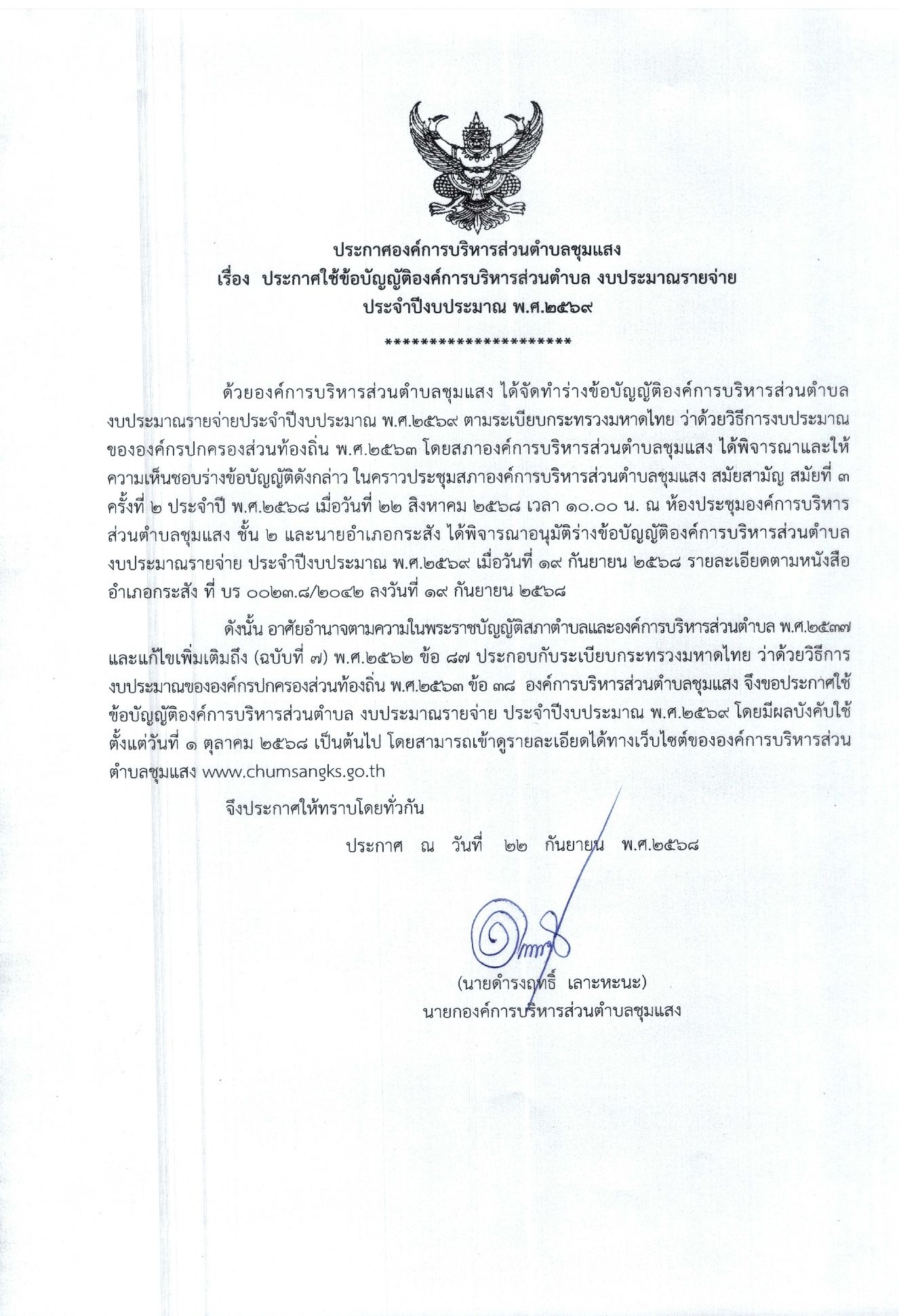 2 ประกาศใช้ข้อบัญญัติองค์การบริหารส่วนตำบล งบประมาณรายจ่าย ประจำปีงบประมาณ พ.ศ. 2569 [ 22 ก.ย. 2568 ]32